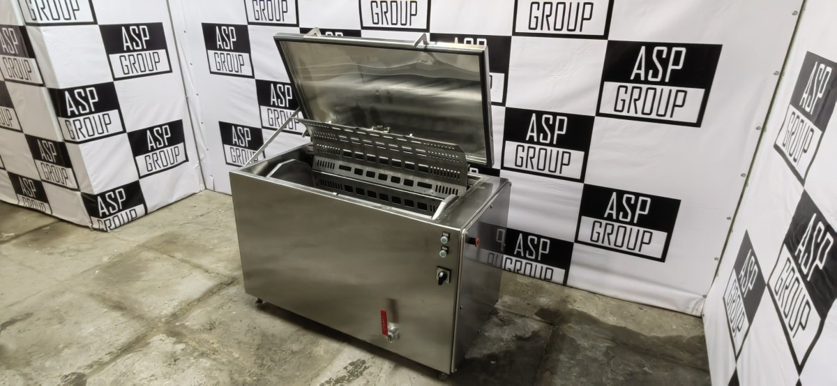 Интенсивная мойка инструмента в подогретом до 85°С моющем растворе происходит во вращающемся барабане. Время мойки регулируется в зависимости от степени загрязнения. Наполнение и слив воды в процессе мойки осуществляется автоматически, через трубки, с помощью контроллера, установленного в электрическом блоке. Дозировка моющего средства осуществляется в ручную. После обработки вешал с моющим средством, происходит процесс ополаскивания. По окончанию процесса звучит звуковой сигнал. Купить машину для мойки коптильных вешал (палок) ASP-MMKP у компании ООО "АСП-ГРУПП" по выгодной цене в г. Александров.