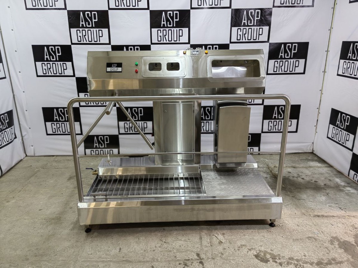 Санпропускник ASP-HL-02 включает в себя модуль дезинфекции рук, модуль мойки рук, дезинфекции подошвы обуви и контроль прохода сотрудников (турникет). Изготовлен из шлифованной нержавеющей стали AISI 304. Модуль мойки рук: Форсунка струйного типа -1шт