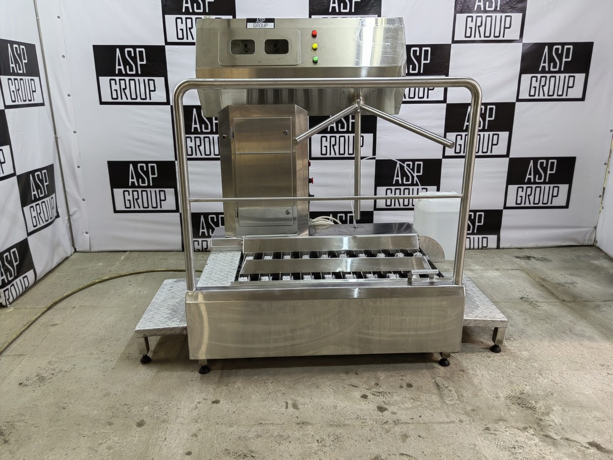 Бачок контроля уровня дез. средства объемом 4, 8 л-1шт. Модуль чистки и дезинфекции подошв обуви: Щётки составные на нержавеющих валах с диаметром ворса 0, 5 мм, общий диаметр вала с щетками 190 мм, общая длина вала с щетками 985мм- 2шт