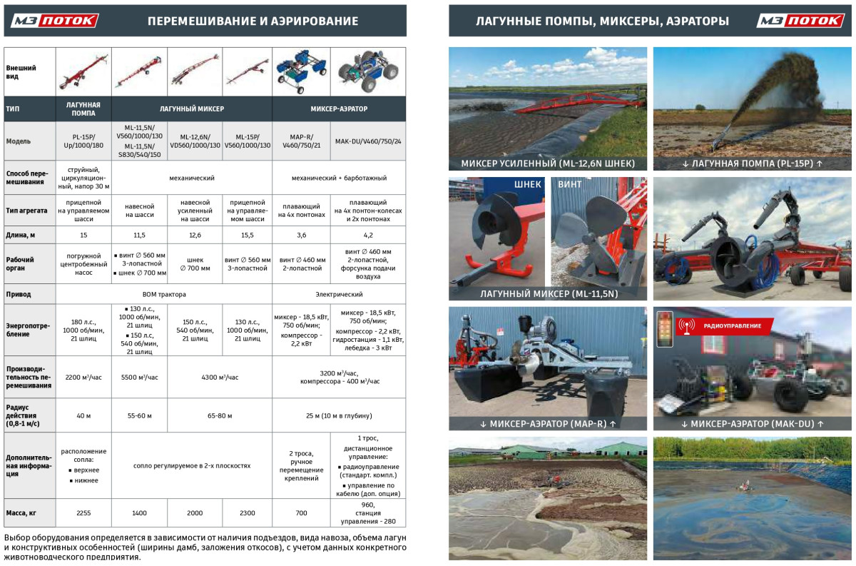 - оборудование перемешивания / аэрирования жидких органических удобрений (лагунные помпы и миксеры от ВОМ, плавающие электрические миксеры)