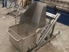 Контейнер или тележка с сырьем вкатывается в захват и фиксируется, ее подъем и переворот выполняется с помощью поршня, по выполнению она освобождается нажатием на педаль.