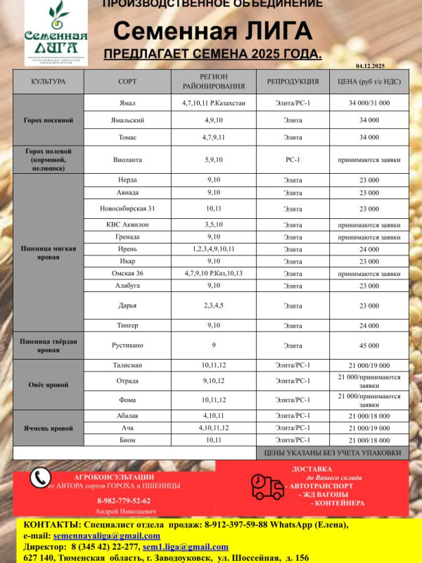 «СЕМЕННАЯ ЛИГА» предлагает